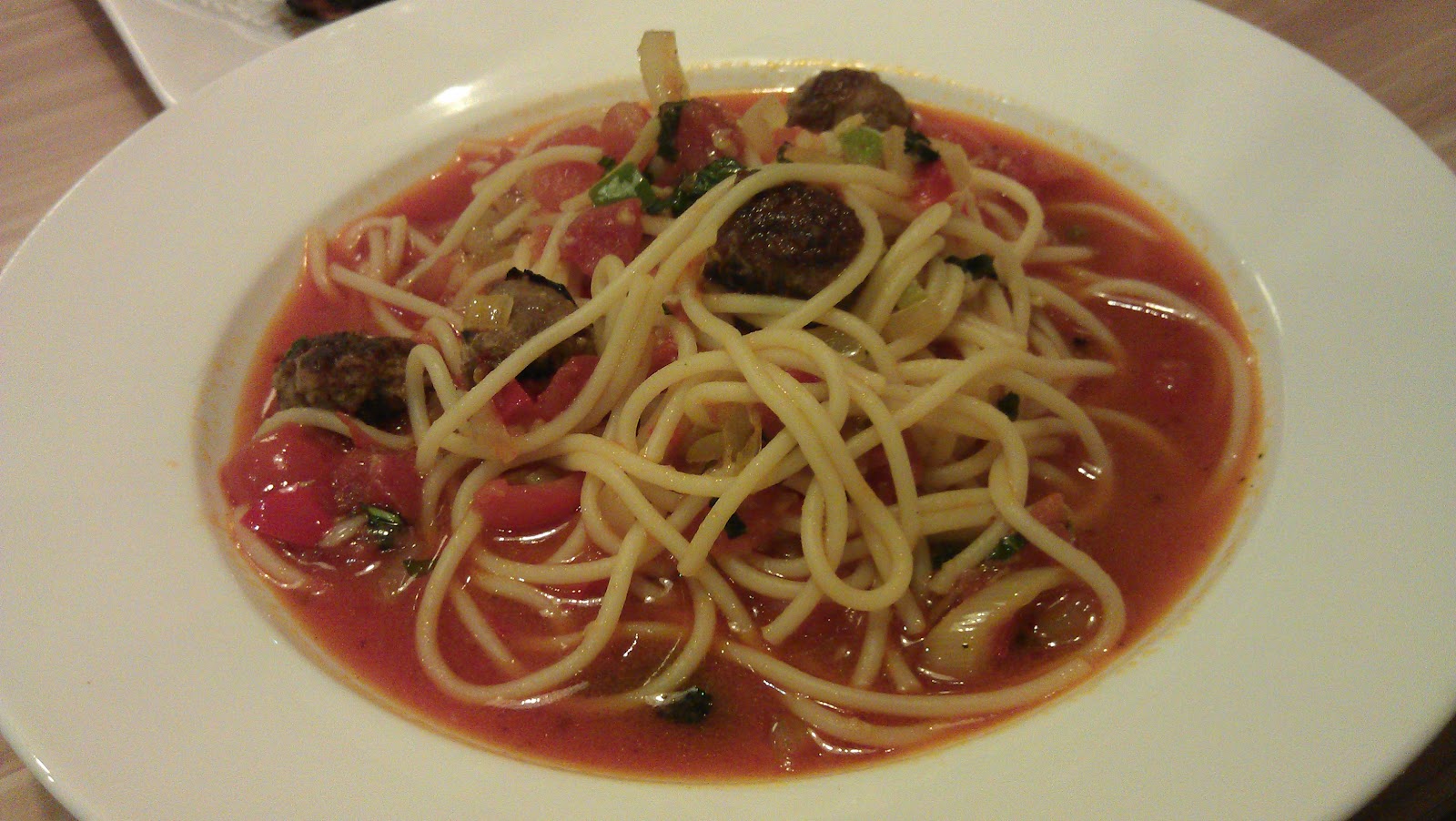 Meatball spaghetti. Too watery.